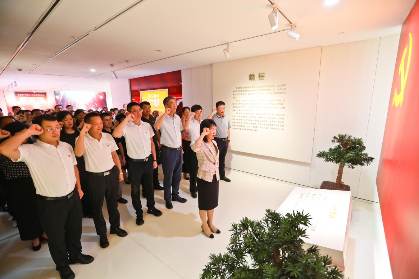 参观完毕后,全体党员面朝庄严的党旗,重温入党誓词,向党作出庄严承诺。