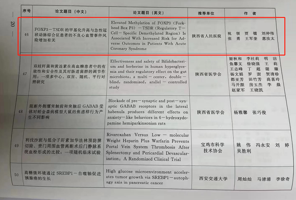 三个团队获奖的优秀论文分别是:宋张骏院长团队获奖论文Application of breast health intelligent detection system based on deep learning technology in breast tumor detection《基于深度学习技术的乳腺健康智能检测系统在乳腺肿瘤检测中的应用》,徐翠香团队获奖论文Costunolide-Induced Apoptosis via Promoting the Reactive Oxygen Species and Inhibiting AKT/GSK3b Pathway and Activating Autophagy in Gastric Cancer《木香烃内酯通过促进活性氧、抑制AKT/GSK3b通路及激活自噬诱导胃癌细胞凋亡》,祝领团队获奖论文Elevated Methylation of FOXP3 (Forkhead Box P3)-TSDR (Regulatory T-Cell–Specific Demethylated Region) Is Associated With Increased Risk for Adverse Outcomes in Patients With Acute Coronary Syndrome《FOXP3-TSDR的甲基化升高与急性冠状动脉综合征患者的不良心血管事件风险增加有关》。