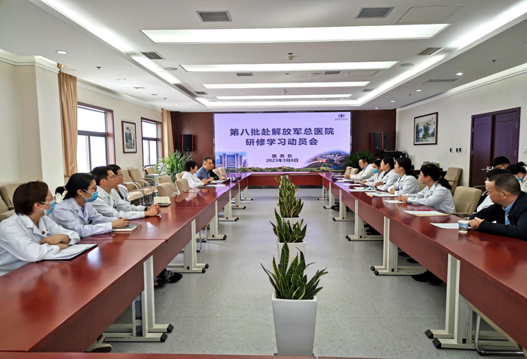 研修学习动员会。王建华副院长、医务处、人事处等部门负责人以及2022年和2023年外出研修学员、研修科室主任等20余人参加,医务处张小玲处长主持。