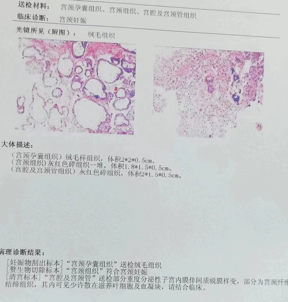 妇科人员立刻进行疑难病例讨论,认为诊断输卵管妊娠依据不足。与患者及家属充分沟通,在保证生命体征平稳前提下密切动态监测患者血HCG、孕酮、B超和生命体征的变化,终于在入院第4天,拨云见日,B超检查提示宫颈妊娠。