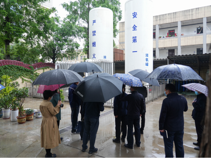 消防队、医疗废物处理中心、共享厨房、有毒有害易燃易爆物品存放室、氧气站、门诊大厅,现场询问工作及管理人员日常工作流程和制度,查看记录表格,实地详细查看问题、排查隐患。