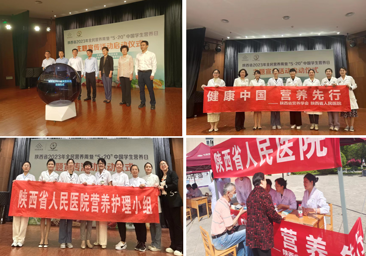 5月14日,陕西省2023全民营养周暨“5.20”中国学生营养日启动仪式在陕西师范大学长安校区盛大举行。主持人宣布陕西营养学会2023年全民营养周科普征文获奖作品及“新零食”创意大赛创意成果,陕西师范大学副校长周正朝致欢迎词,陕西省营养学会专家委员会主任王枫教授解读《成人高脂血症食养指南(2023年版)》《成人高血压食养指南(2023年版)》《成人糖尿病食养指南(2023年版)》《儿童青少年生长迟缓食养指南(2023年版)》,陕西省营养学会理事长张瑞娟、陕西省卫生健康委员会副主任余立平分别讲话。最后各位领导启动3D全息投影启动球,宣布陕西省2023全民营养周正式启动。黑料网临床营养科及营养护理小组有关人员参加了启动仪式并积极开展义诊活动。