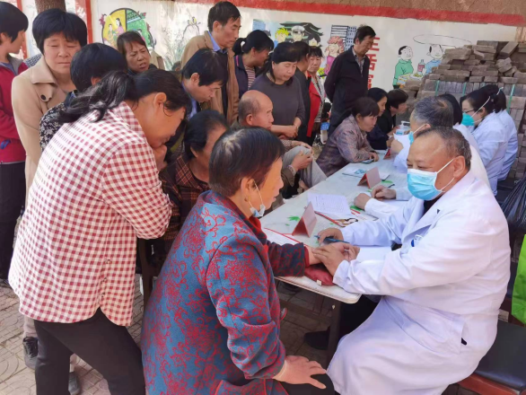 7点30分,由离退休办梁增利同志带队的医疗专家们一行12人驱车前往蓝田县安村镇安村、府庄村。由于当地政府前期做了广泛宣传,前来就诊咨询的村民除了安村、府庄的以外,还有吴庄、马沟的村民。就诊咨询的村民分别在安村镇安村、府庄村委会广场排好队,等候医疗专家们的到来。看到村民这么热情,消化内二科吴友伟主任、心血管内三科邢坤、骨科罗振群、心内科李珉、中医科吉海旺主任医师、神经内科郭民侠、种莉主任医师等九位医疗专家立即投入到工作中去。