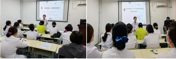 三、进行全民营养周热身,在内分泌糖尿病病院,营养护理小组、临床营养科联合开展5.11世界肥胖防治日患教会,主题为“远离肥胖,关爱健康”。李宇菲等营养护士为患者及家属授课、答疑解惑。