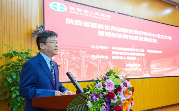 中共陕西省委教育工委、陕西省教育厅书记刘建林指出,中心要以高尚医德培育时代医者,把思政教育和医德培育贯穿医学人才培养全过程;充分利用好医学教育资源,推动多学科复合型人才培养,实现医改与教改良性互动;充分发挥中心平台纽带作用,完善管理机制,畅通交流渠道;围绕医教协同存在的难点和挑战,精心钻研,探索形成具有陕西特色的医教协同理论成果和模式。