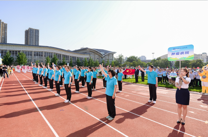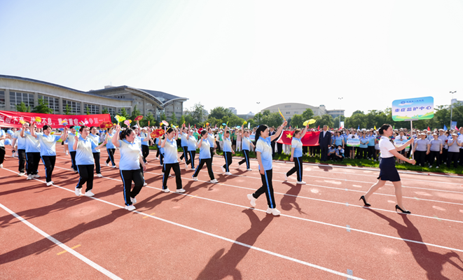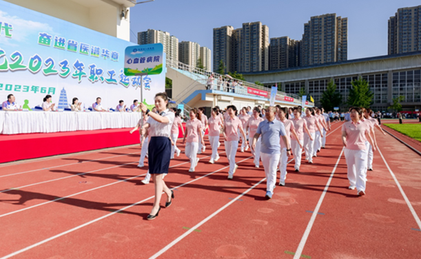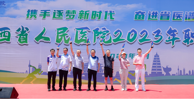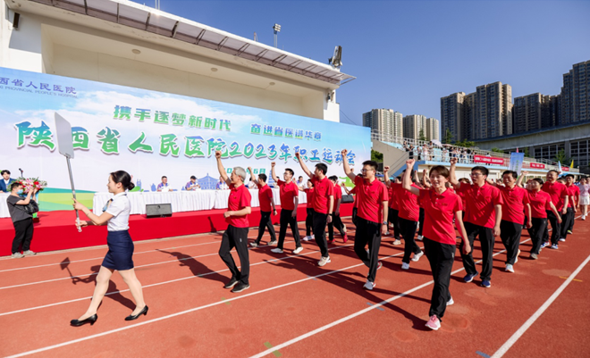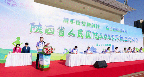 上下团结友爱、奋发向上精神风貌,在院党委的支持指导下,院工会精心筹备,6月10日上午,黑料网“携手逐梦新时代,奋进省医谱华章”——2023年职工运动会在西安体育学院火热举行。省卫生健康委员会党组成员、副主任、一级巡视员赵岚,院领导班子成员出席,全院28支参赛代表队及观赛职工等1200余人参加。大会由副院长王建华主持。