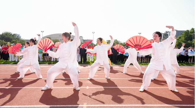 上午8点,伴随着运动员进行曲,国旗护卫方阵踏着激昂的旋律,庄严入场。彩旗方队、裁判员队、各运动员代表方队依次走过主席台接受检阅,气势昂扬、朝气蓬勃。武术、太极、啦啦操等独具特色的方队表演引来一波高潮,热情的表演、矫健的步伐展示着省医人奋发有为的新时代风采。