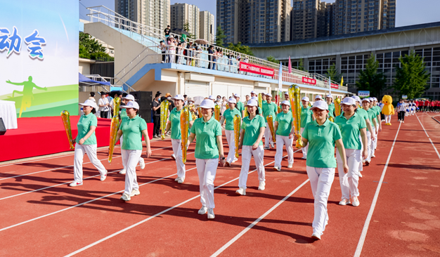 正式比赛前,全体运动员一起进行了热身运动。本次运动会的12项竞赛项目中,有展现运动健儿快步如飞的100米、200米等短跑赛事;有角逐运动员耐力体力的(800)1000米等中长跑赛事;有展现团队合作精神的4×100米接力、跳长绳比赛;有较量运动员综合素质的跳远、抛实心球等赛事。同时,为了增加趣味性,大会还特意设定了4项趣味游戏竞赛,参赛选手可尽情地在绿茵场上一展风采。