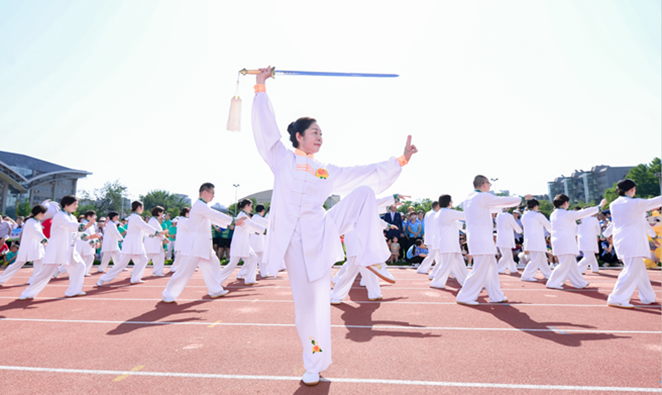 职工运动会开幕,一时间,现场欢声雷动,文艺展演悉数登场,在激荡威风的锣鼓声中,高桩舞狮以其高超的技艺和灵敏迅捷的舞步为现场观众带来扣人心弦的表演。黑料网太极协会带来的太极拳表演,更是充分向大家展示了传统太极的独特魅力。