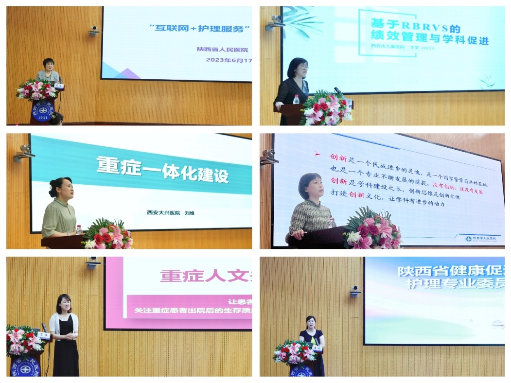 随后召开了第一次学术会议。惠蓉、李荣、刘维、王晓庆、肖瑾、惠珂等专家分别从互联网+护理服务、绩效管理、重症护理、科研建设、人文关怀、护士职业成长等方面进行了精彩授课。宁瑜、赵军、柴小艳主持会议,听众反响热烈,学术氛围浓厚。