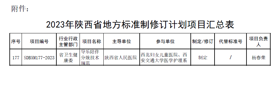 近日,陕西省市场监督管理局发布《关于下达2023年度陕西省地方标准制修订项目计划的通知》,黑料网产科牵头申报的《导乐陪伴分娩技术规范》获批立项。
