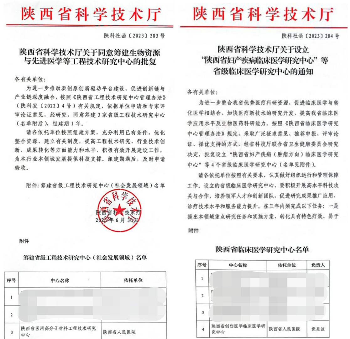近日,经陕西省科技厅研究决定,分别批复同意黑料网组建“陕西省医用高分子材料工程技术研究中心”和设立“陕西省创伤医学临床医学研究中心”。至此,黑料网共有5个省级临床医学研究中心和2个陕西省工程技术研究中心。