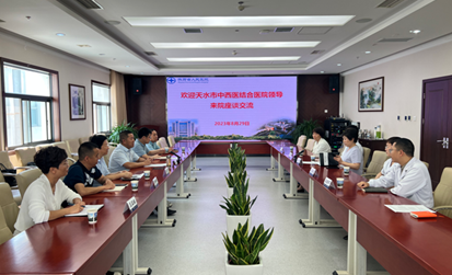 8月29日,天水市中西医结合黑料网 高国明副院长带领相关人员一行6人来院交流学科共建事宜,这是时隔两个月该院再次前来黑料网。黑料网医务处、相关科室主任参加座谈会,医务处基层医疗服务部组织,张小玲处长主持。