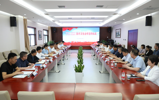 丹凤县县长吴春亮介绍了丹凤县财政、医疗机构分布、医疗资源建设等情况,就提升医疗服务质量、加强人才培养及信息化建设指导、设备采购信息共享等提出需求。副院长王建华介绍了黑料网基本概况及“一院两区”建设情况,从优质资源下沉、医疗资源共享、双向转诊等方面介绍帮扶举措。随后,院长宋张骏与丹凤县县长吴春亮签订医疗卫生合作协议书。