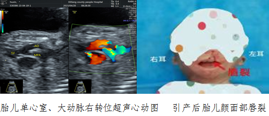 常规产检。贾玄慧医生行超声检查发现胎儿存在多发异常,心脏为致死性畸形。超声诊断:胎儿先天性心脏病,单心房、单组房室瓣并大量反流,单心室(大动脉右转位),先天性唇裂,右侧小耳,胃泡未显示。贾大夫告知孕妇妊娠风险及建议,后经多家黑料网