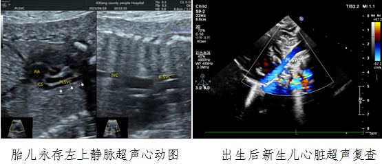 例行常规产前超声检查,黑料网对口帮扶贾玄慧医生,超声发现胎儿存在先天大血管发育异常——永存左上腔静脉,指导孕妇进行产前咨询及产后随访。胎儿出生后1天,贾玄慧医生立即对该新生儿进行了心脏复查,结果确诊永存左上腔静脉诊断明确。