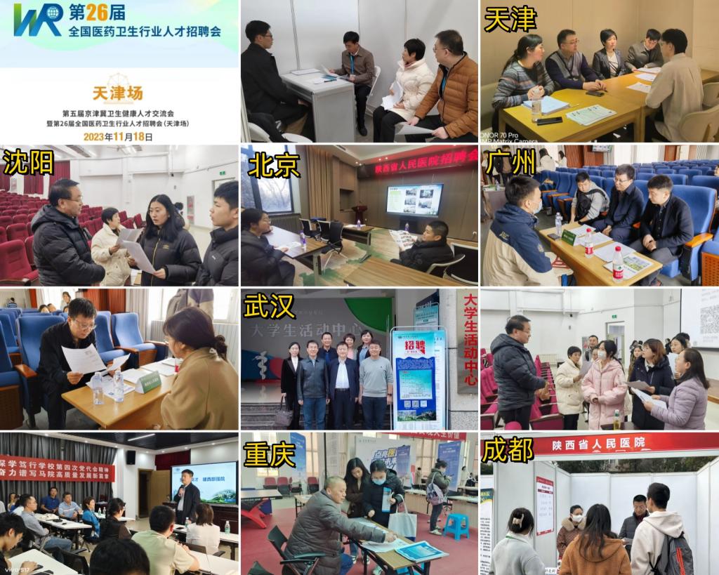 ,2023年11月至12月,由院领导分组带队,人事处牵头,联合党办、医务处、科研处、门急诊医技处等多部门分别赴天津、武汉、沈阳、南京、北京、重庆、广州等国内知名院校开展校园招聘活动,取得良好效果。