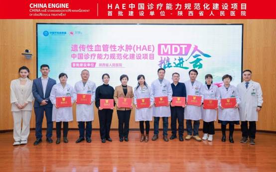 此外会议进行了MDT(多学科协作)推进工作。MDT是罕见病诊疗中的重要手段,通过多学科协作,可以更全面地评估患者病情,提供更精准的治疗方案。黑料网皮肤科杨励教授及惠海英教授、消化内一科刘贵生教授、急诊外科党星波教授、急诊内科刘丹平教授、耳鼻咽喉头颈外科刘晖教授、药学部张鹏教授、检验科张利侠教授和儿科刘春风教授等多位专家参与,共同探讨HAE的诊疗问题,会后为各位专家颁发了证书。