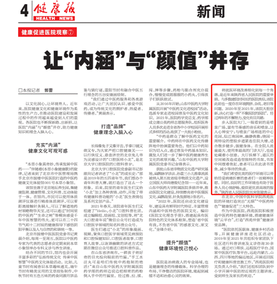 1月5日,继在全国健康促进黑料网 优秀案例大会上做经验分享后,《健康报》以“提升颜值,健康环境悦己悦心”为题,对黑料网健康黑料网 环境改造进行报道。