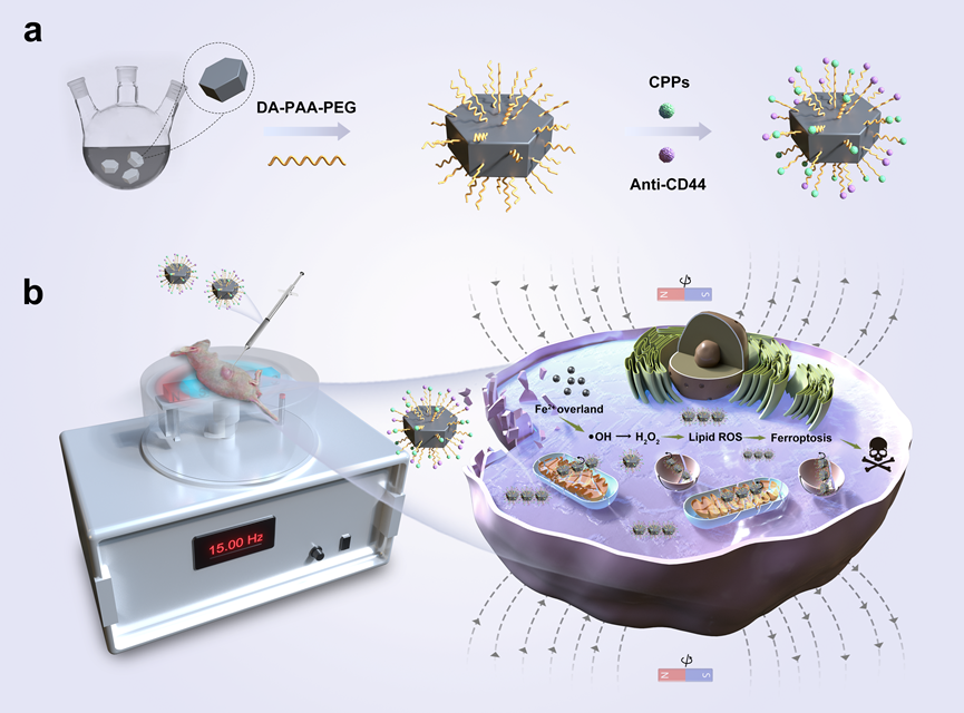 论文题为“Polyhedral magnetic nanoparticles induce apoptosis in gastric cancer stem cells and suppressing tumor growth through magnetic force generation”。文中详细介绍了一种利用旋转磁力破坏肿瘤干细胞细胞膜以及线粒体结构,最终杀伤肿瘤干性细胞,抑制肿瘤生长的新方法。该方法在恶性肿瘤治疗中展现出巨大潜力,为恶性肿瘤的治疗提供了新策略。