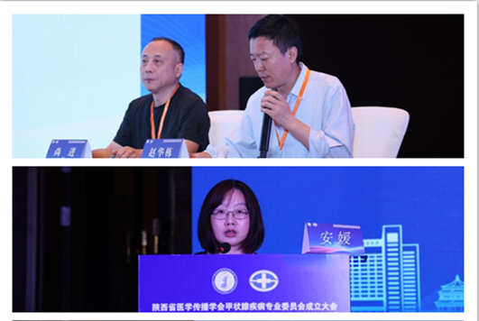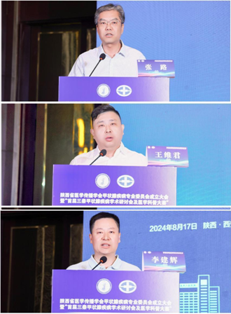 致辞,表示期待与陕西省医学传播学会一道,推动全省范围内的医疗发展和学术交流,希望专委会在多学科合作、政策建议和公众健康教育等方面取得更大进展,最终提高甲状腺疾病的规范诊治和公众健康素养。陕西省医学传播学会王维君常务副会长代表协会进行了发言,对专委会的成立表示祝贺,期望专委会的成立能够带动我省对该疾病的诊疗水平,提高民众对甲状腺疾病的关注度。李建辉主任表示,专委会将针对甲状腺疾病尤其是甲状腺癌的规范诊治开展科普宣教,紧密围绕学术、科普、科研、教学等工作,立足优势,培养优秀人才,推动甲状腺专业学科建设,提升甲状腺疾病的诊疗水平。