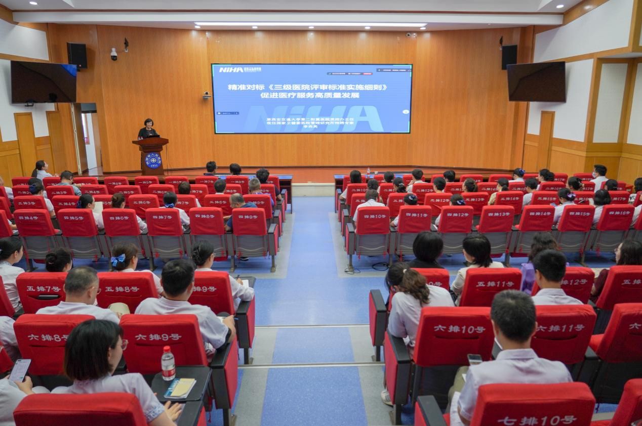 医疗质量提升》的专题讲座。全院临床医技科室主任、业务副主任、护士长、业务副护士长以及医务处、护理部、门急诊与医技管理处、大数据中心等职能部门工作人员共计200余人参加培训会。
