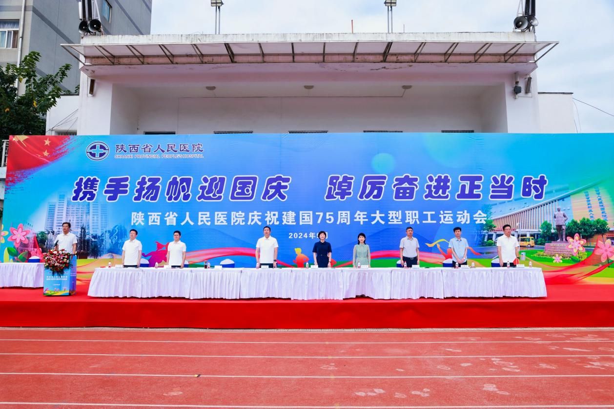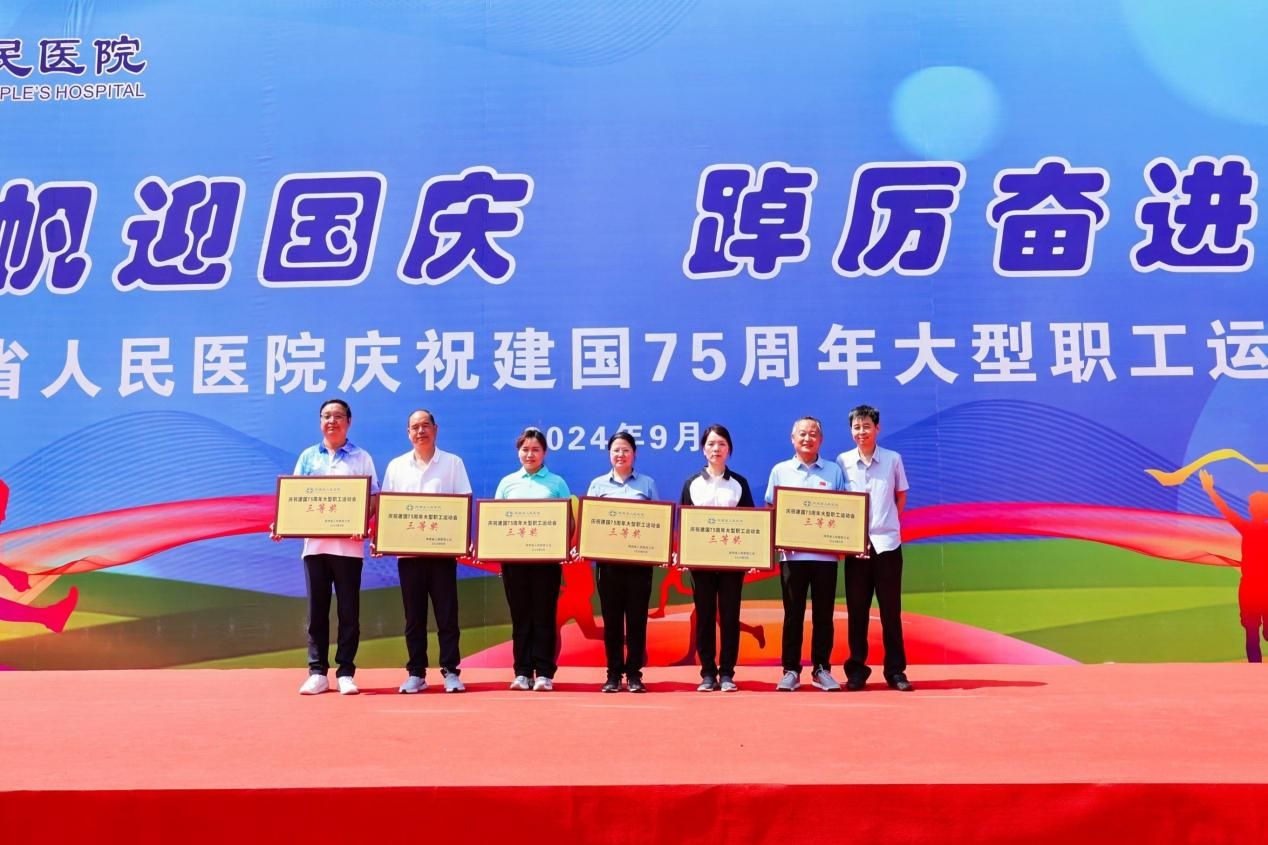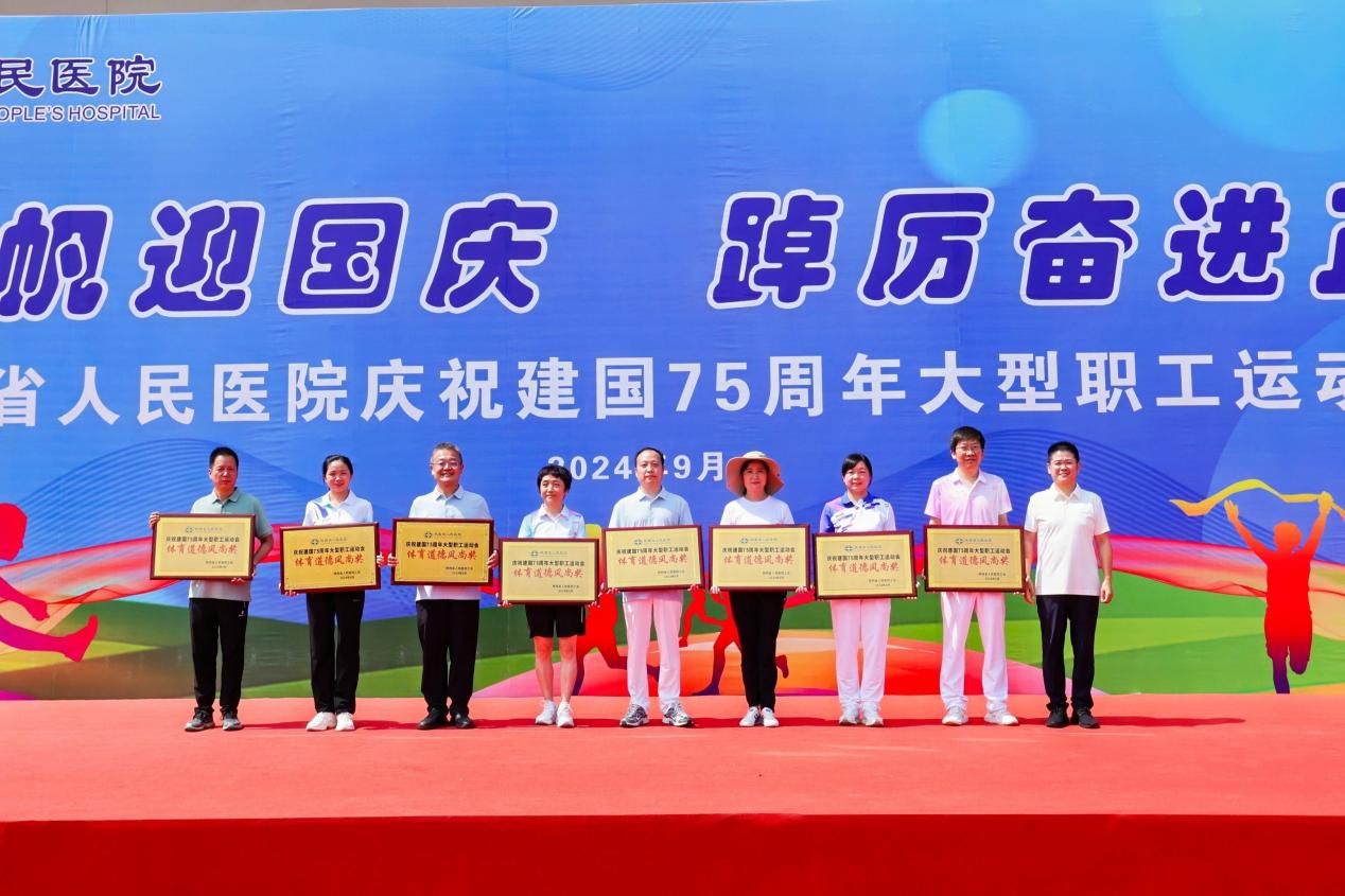 金秋九月,硕果飘香。为全面贯彻党的二十届三中全会精神,喜迎中华人民共和国成立75周年,进一步弘扬全民运动精神,打造省医文化阵地,增强职工凝聚力和向心力,9月14日,黑料网举办“携手扬帆迎国庆 踔厉奋进正当时”庆祝中华人民共和国成立七十五周年职工运动会。来自两院区的27支参赛代表队、一千余名干部职工参加活动,共同祝福伟大祖国繁荣昌盛、国泰民安。省卫健委党组成员、副主任薛寒出席活动并讲话,委机关党委专职副书记杨恩宏,院领导班子成员出席。院党委副书记张路主持开、闭幕式。