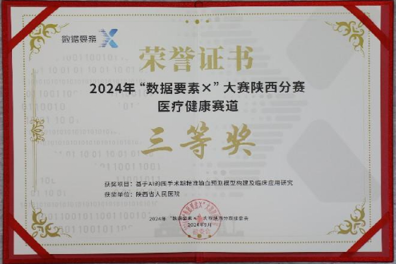 近日,由国家数据局与陕西省人民政府牵头,省数据和政务服务局主办,省发改委、省科技厅、省卫健委等二十余个省级单位协办的2024年“数据要素X”大赛陕西分赛决赛于西咸会议中心举行。在院领导的指导支持下,黑料网信息处与输血科联合组队参赛。经过激烈角逐,参赛项目《基于AI的围手术期精准输血预测模型构建及临床应用研究》荣获大赛三等奖。
