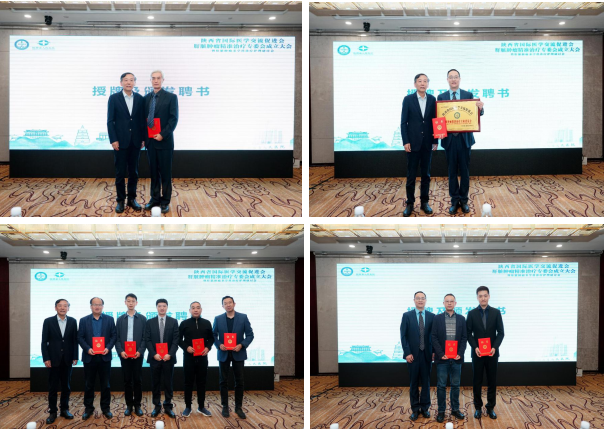 肝胆外科名誉主任杜立学颁发名誉主任委员证书、副主任张煜颁发主任委员证书,并向8位专家分别颁发了副主任委员、秘书长、副秘书长证书。