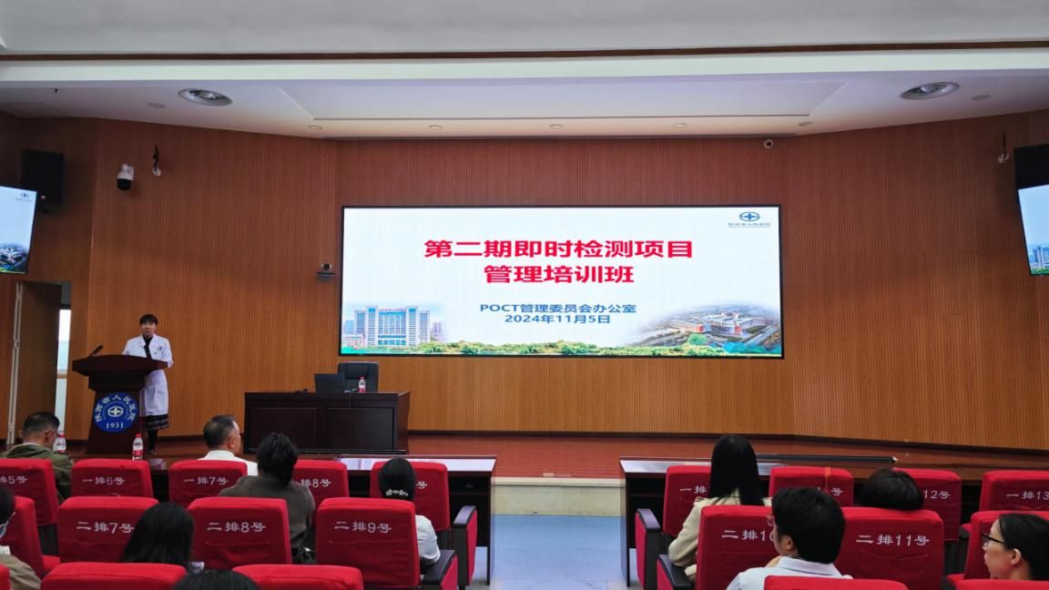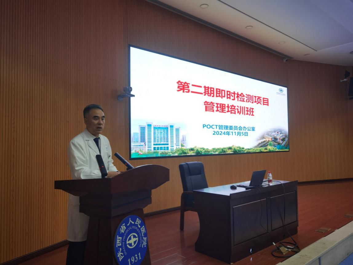 开班仪式由检验科张利侠主任主持,她结合检验科工作流程和真实案例,从专业角度强调了即时检测项目管理培训的目的和意义。袁军副主任介绍了本次培训的具体内容及时间安排。门急诊与医技管理处徐凯科长就即时检测管理工作重要性以及加强科室即时检测质量监管等方面做了强调和安排。