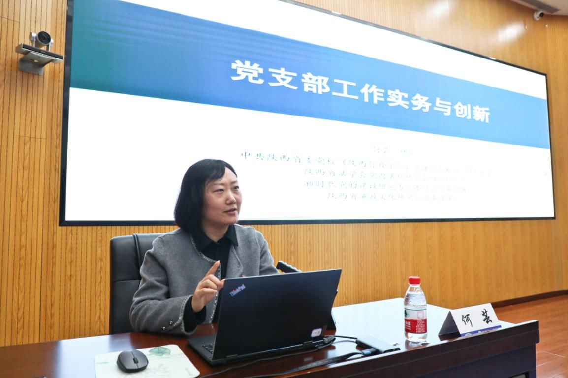 培训邀请到陕西省委党校党建教研部副主任陈正文以及教研部何芸副教授分别从立法意图、核心要义、贯彻落实三个方面对支部工作条例做了详细且完备的剖析,阐述了新时代基层党组织标准化规范化建设的发展、党支部的设置和党支部的内部建设。通过详细的引证与生动的举例,详实地说明了党支部的建设、领导班子选举、发展党员、台账建立的步骤和容易出现的问题,为以后工作的开展夯实了良好的基础。