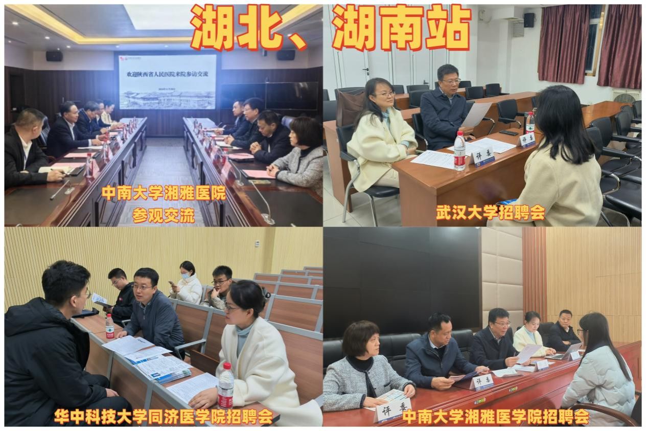 11月26日-12月1日,副院长王建华、纪委书记王利军及副院长米涛、张恩科分别带领人事处和分管部门工作人员先后赴中山大学、华中科技大学、中南大学湘雅医学院、中国医科大学等高校和全国医药卫生行业人才招聘会开展博硕士人才招聘工作,精准引才取得了良好效果。各招聘小组共计收到近800份简历,面试近120人。经过现场宣讲、简历筛选、岗位匹配、专家评议等程序,成功与50余名优秀博硕士人才签订拟录用协议。