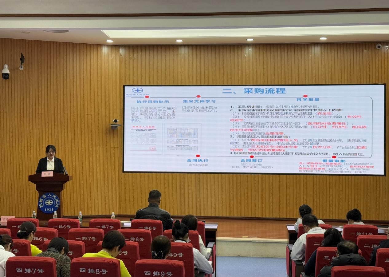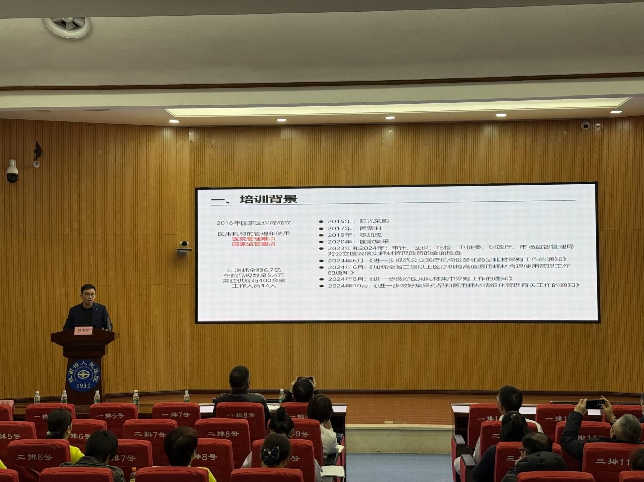 随着医改新政的进一步推进,医用耗材精准化管理越发成为管理难点和监管重点,在准入采购、使用收费、医保支付、监测评价及全程管控方面尤为突出。为进一步加强医用耗材规范合理使用,耗材试剂部在医务处和财务处的支持下,于12月16日在十七楼会议室举办了“医用耗材规范合理使用专题培训”。段降龙副院长致辞,特邀西安交通大学第二附属黑料网