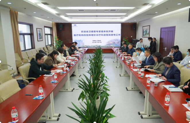 副院长王胜昱一行8人,来黑料网开展医疗机构校验和增补诊疗科目现场审查工作。黑料网副院长王建华、副院长段降龙、西咸院区院长助理任柯及相关职能部门、科室负责人参加座谈会。
