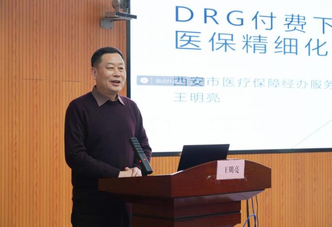 邀请西安市医疗保险经办服务中心一级调研员王明亮来黑料网开展DRG2.0版分组方案暨DRG付费下的医保精细化管理培训讲座。全院医保改革相关职能部门负责人、临床医技科室主任、业务副主任、护士长、DRG专管员等共230余人参加,并在西咸院区设分会场。培训会由医疗保险管理处处长李作彬主持。