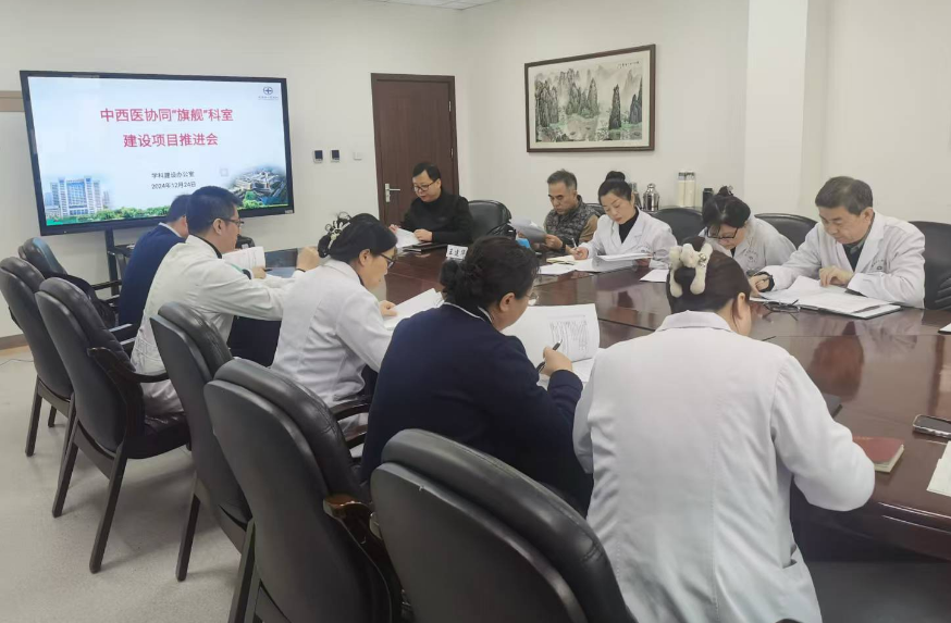 召开中西医协同“旗舰”科室工作推进会。王建华副院长参会指导,信息处、教学处、大数据中心、药学部等行政职能处室,中医科、针灸科、妇科、风湿免疫科、康复科等临床科室人员相关人员参会。会议由学科办田应选主任主持。
