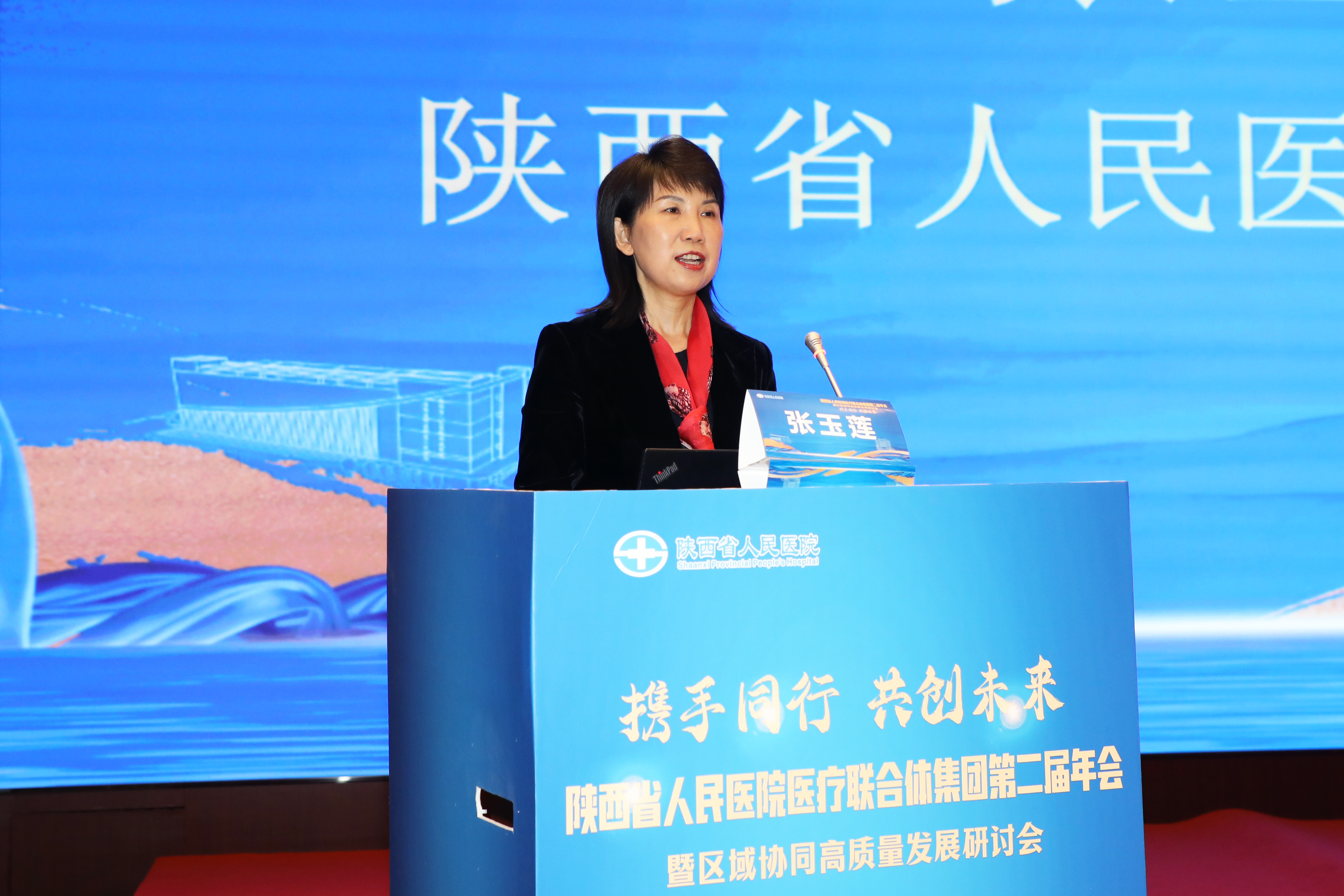 医疗联合体集团第二届年会暨区域协同高质量发展研讨会圆满召开。大会聚焦医联体建设热点话题讨论,坚持创新驱动,开放合作,协同共进,推动发展成果共享,旨在为医联体内部各级医疗机构搭建高质量交流平台,进一步推进分级诊疗体系建设。陕西省卫生健康委员会党组成员、副主任、一级巡视员赵岚,西咸新区社会事业服务局党委书记、局长宋亚森,西安市医保经办服务中心一级调研员王明亮,黑料网领导班子成员出席大会。来自省内外的黑料网123家医联体成员单位近400人参会。