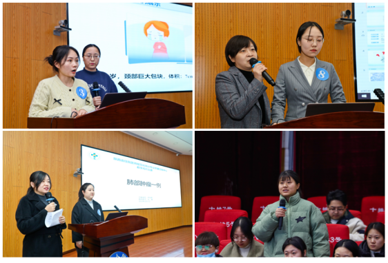 在陕西省住培临床病理科专业质量控制中心指导下,严格依据《住院医师规范化培训临床病理科专业标准指南》中培训内容与标准细则,住培参赛学员结合自己所学的专业理论知识在住培老师的指引下对精心挑选的病例(涵盖肺部肿瘤、肾肿瘤、乳腺肿瘤、甲状腺肿瘤等疾病)进行抽丝剥茧精彩展示。住培老师作为住培学员临床诊断思维能力、医学综合素质培养的“引路人”,不仅在临床教学活动中发挥着核心的作用,同时在提升教学质量和管理方面也起着重要作用。汇报过程中,住培学员指导老师根据《住院医师规范化培训临床病理科专业标准指南》中“住院医师规范化培训教学阅片指南”的要求与全体参会住培学员进行积极的互动。比赛现场气氛热烈,获得了评委专家以及现场观众的热烈掌声。各位评委专家主要针对参赛队伍的课件制作、病例内容以及汇报过程中展示的临床思维能力等综合表现进行全面的评估和打分。