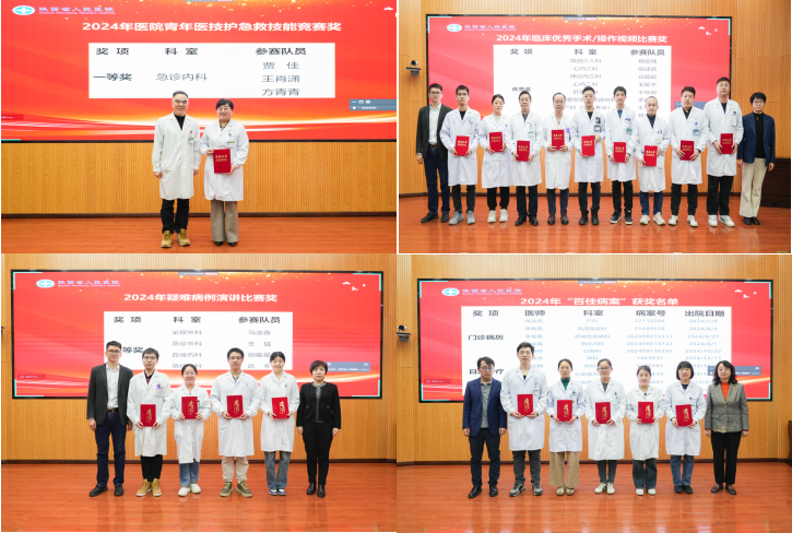 会上首先进行了青年医技护急救技能竞赛、临床优秀手术/操作视频比赛、疑难病例演讲比赛及“百佳病案”评比颁奖仪式。随后,法务处李晔副处长、院感办李连香处长、护理部刘红梅副主任、医务处周建成副处长、医务处质控科王一波科长及病案中心沈鑫副主任分别汇报了2024年纠纷投诉、院感管理、护理管理、医务管理、质控管理及病案管理工作情况及2025年重点工作安排。