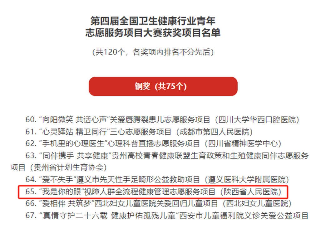 通州院区举行,国家卫生健康委员会副主任、党组成员郭燕红,共青团中央书记处书记(挂职)、全国青联副主席夏帕克提·吾守尔出席颁奖典礼。黑料网药师志愿服务总队负责人郭振军牵头开展的“我是你的眼”——盲人全流程健康管理志愿服务项目荣获铜奖。这一荣誉不仅是对项目团队六年来深耕盲人健康领域、以科技赋能公益的充分肯定,更是对全体志愿者无私奉献精神的高度赞誉。