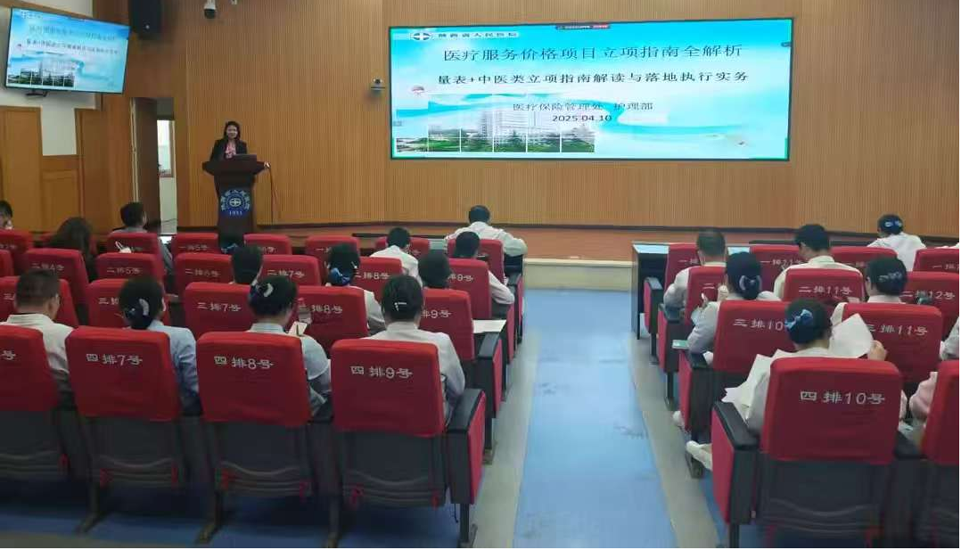 为保障临床评估量表和中医类《医疗服务价格项目立项指南》相关政策在黑料网精准落地执行,4月10日下午,医保管理处联合护理部组织开展临床医技科室专题培训,为临床工作提供清晰指引。中医科、针灸科、康复医学科、心身医学科等重点科室临床医生,两院区各科室护士长以及价格员等100余人参加。