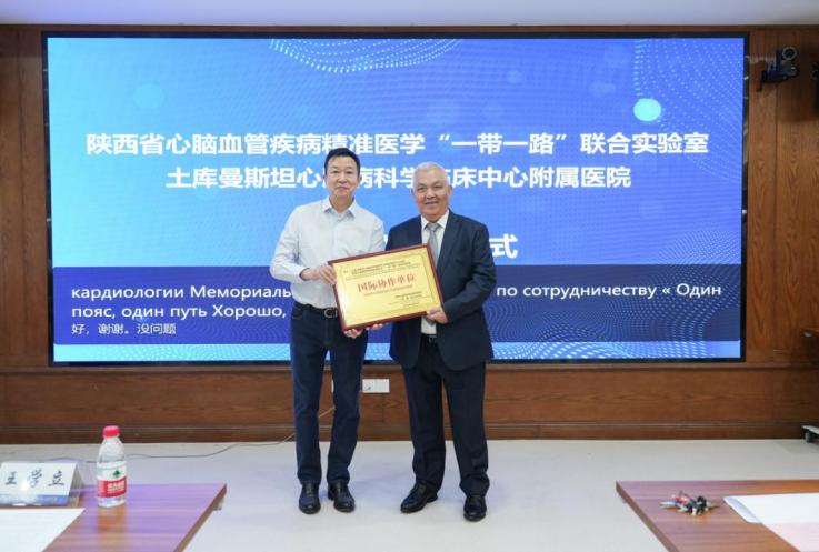 和“一带一路”联合实验室向阿纳耶夫教授(Prof. Begench H. Annayev)与苏莱曼古利耶夫教授(Prof. Suleymangulyyev Shaguly)颁发“国际合作者”聘书,并向其所在单位授予“‘一带一路’合作单位”牌匾。联合实验室与土方代表正式签署《战略合作框架协议》,明确将在科研攻关、临床协作、人才交流与平台共建等方面建立长期稳定的合作关系。
