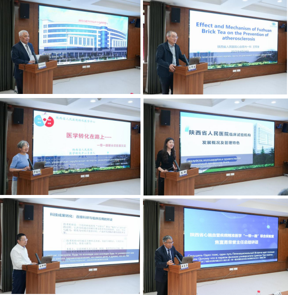 代表团来访。双方围绕心脑血管疾病精准诊疗、科研协作与成果转化等议题展开深入交流。陕西省科技资源统筹中心副主任王学立、培训部负责人刘小燕及黑料网院长、联合实验室主任宋张骏,荣誉主任焦富勇,副主任刘仲伟等及联合实验室人员、相关职能科室负责人参加活动。