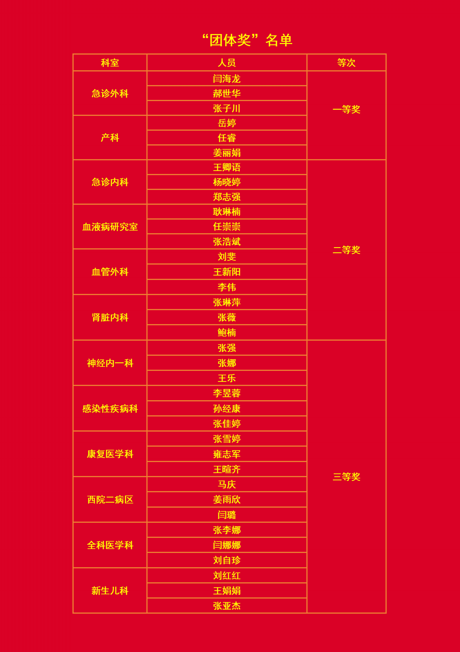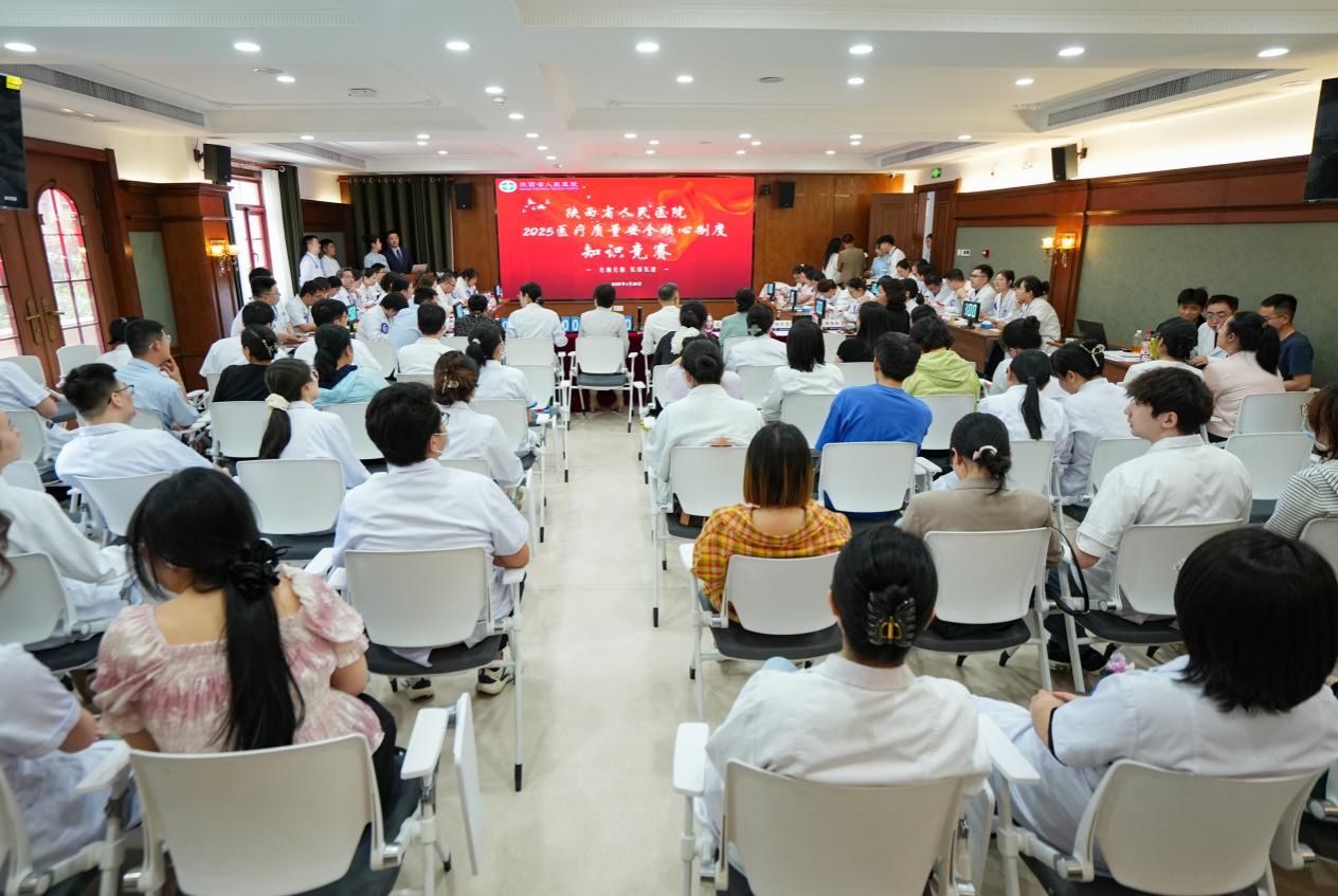 为深入贯彻国家医疗质量安全核心制度要求,强化医务人员质量安全意识,在院领导的高度重视和安排部署下,医务处联合工会于4月29日下午,在科研楼三楼学术报告厅举办“以赛代训砺尖兵”为主题的知识竞赛决赛。全院12支代表队经过层层选拔脱颖而出晋级决赛,展现了一场精彩纷呈的专业知识与团队协作的巅峰对决。竞赛邀请王建华副院长、医务处张小玲处长、教学处马东瑞处长、工会杨红玲副主席、急诊外科杜工亮副主任、西院一病区赵媛主任、超声医学中心刘莉主任作为现场评委和特邀嘉宾。