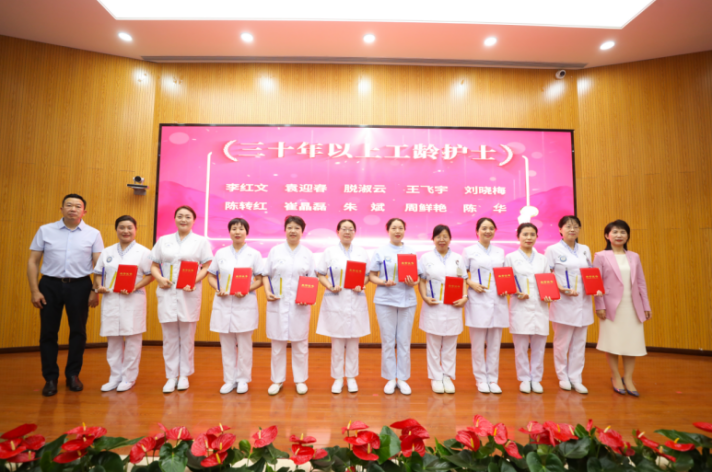 关于护理先进集体和先进个人的表彰决定。院领导对“年度先进护理单元”“十佳业务能手”“十佳青年新星”“改善护理服务行动明星”“护理质量改善贡献奖”以及“30年以上工龄护士”等获奖集体和个人进行了表彰,激励全体护理人员再接再厉,再创佳绩。
