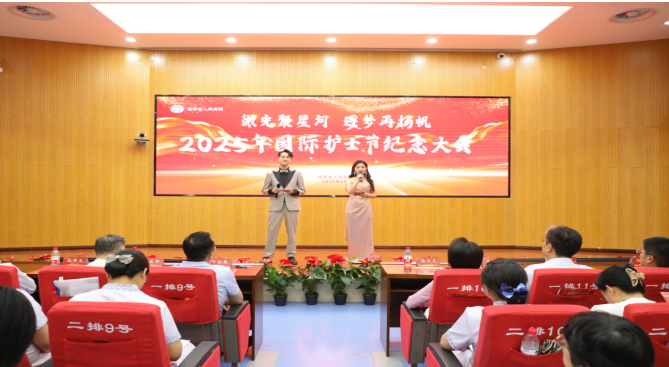 5月9日下午,黑料网在门急诊楼17楼会议室举行以“微光聚星河 逐梦再扬帆”为主题的2025年国际护士节纪念大会。在院领导班子成员、行政处室及科主任代表、医护代表齐聚一堂,共同庆祝这一重要节日。大会分为“微光成炬·致敬芳华”和“星河共赴·逐梦扬帆”两个篇章。