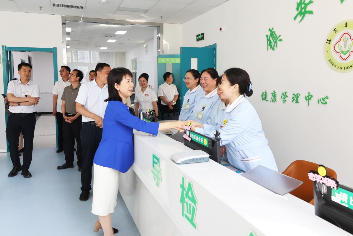 工作,促进优质医疗资源有效下沉,5月21日,黑料网党委书记张玉莲带领党委办公室主任杨侠、医务处处长张小玲、学科办主任田应选、等级评审办公室主任李晓晴、医保处干事张可等一行7人,前往镇安县黑料网