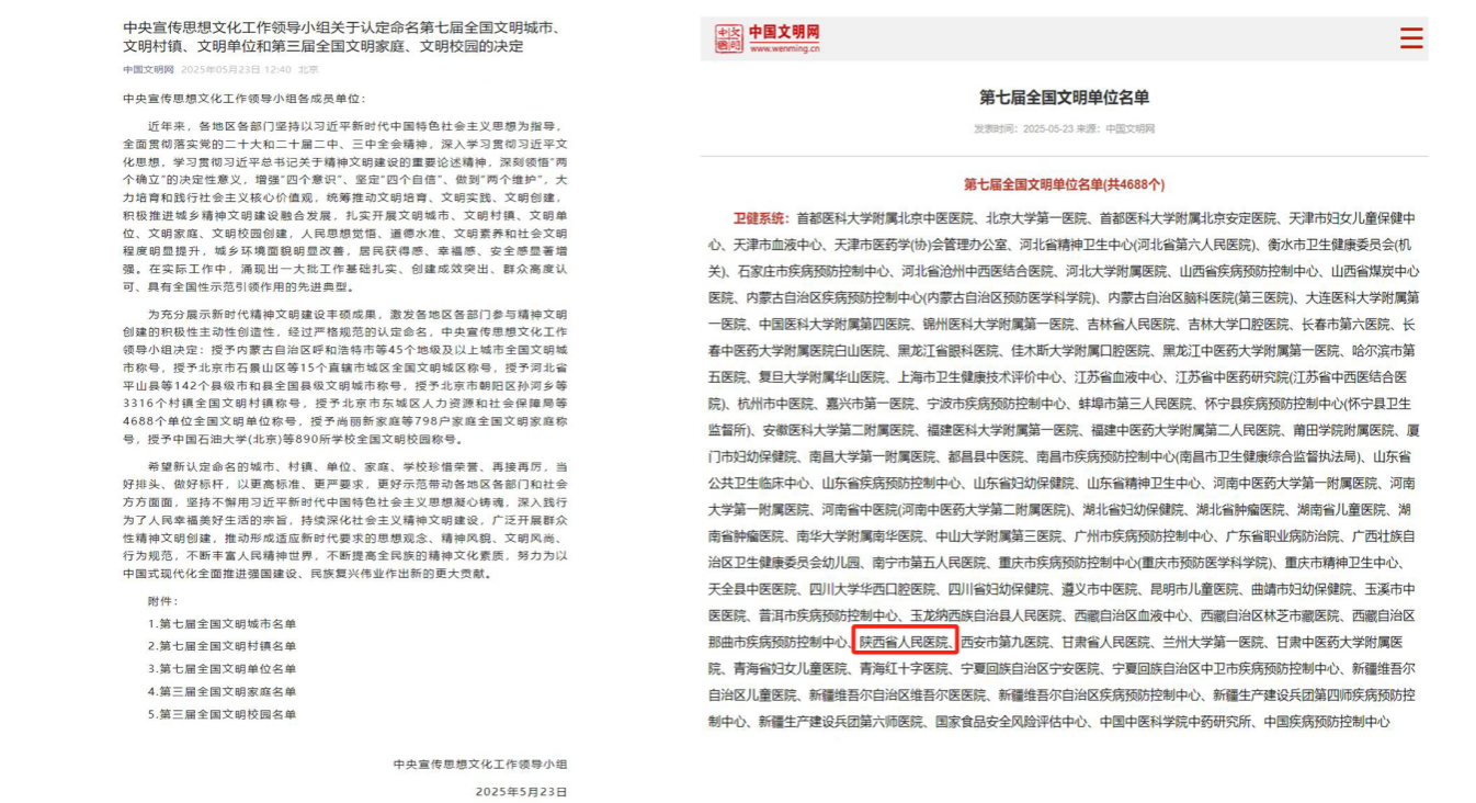 2025年5月23日,全国精神文明建设表彰大会在北京召开。中央宣传思想文化工作领导小组发布《关于认定命名第七届全国文明城市、文明村镇、文明单位和第三届全国文明家庭、文明校园的决定》,黑料网荣获第七届“全国文明单位”称号。