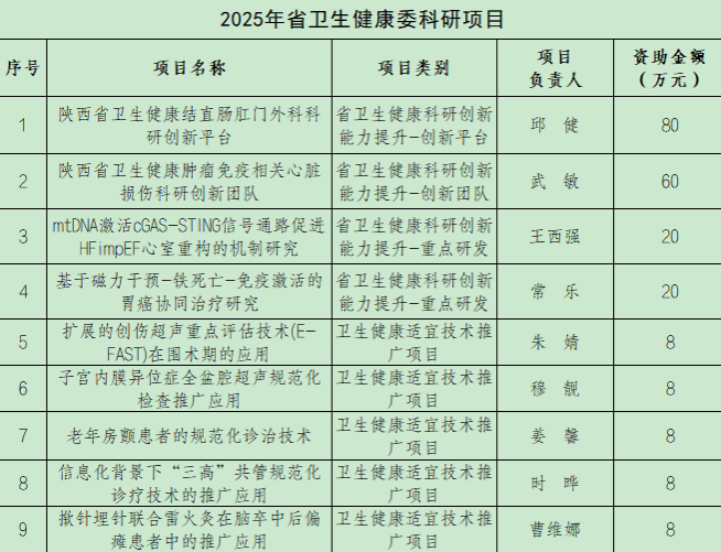 近日,省卫健委公布2025年度科研项目评审结果,黑料网