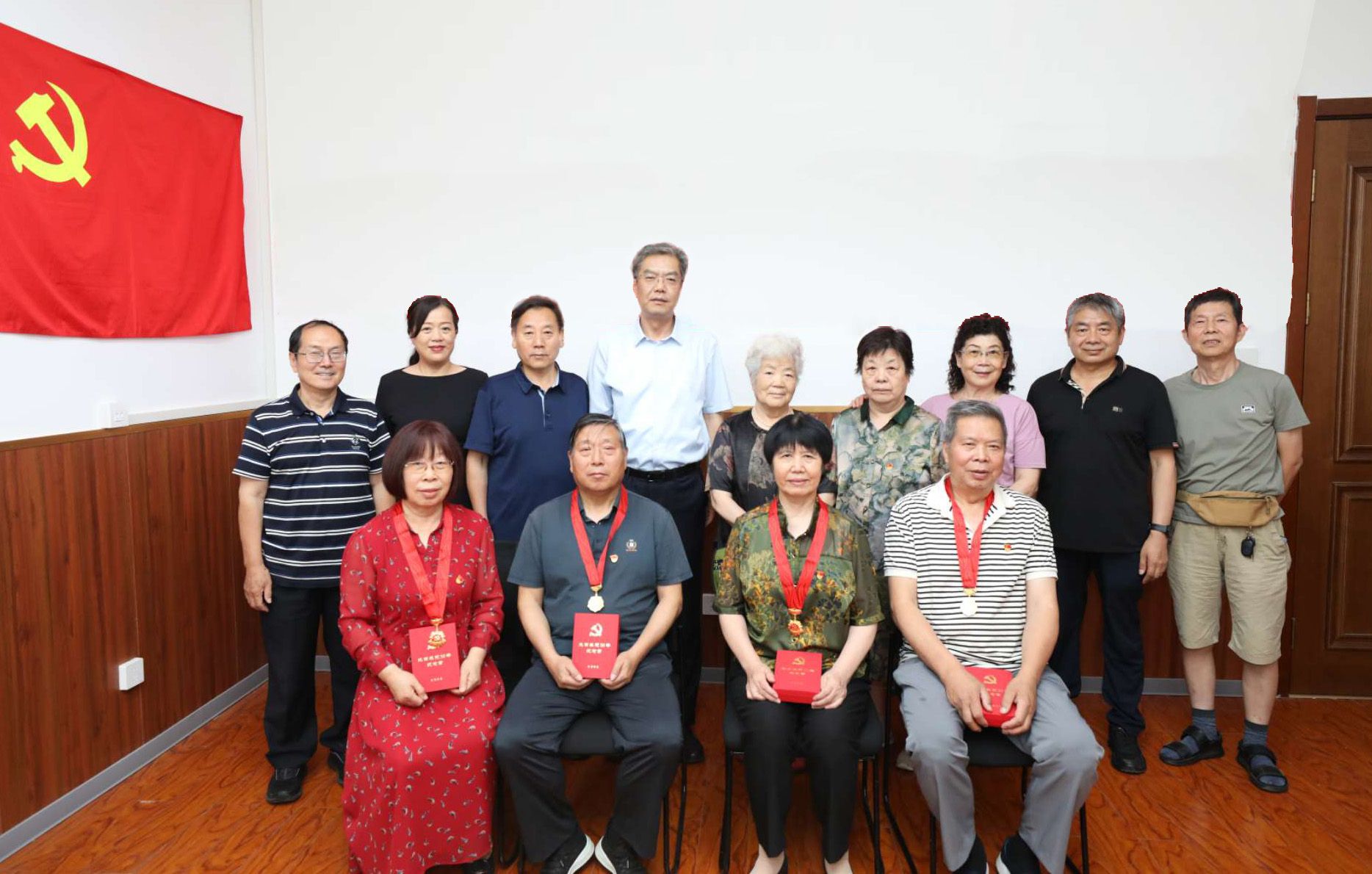 在中国共产党成立104周年即将到来之际,为了鼓励广大老党员继续保持共产党人本色,坚定理想信念,为党旗增辉,2025年6月26日,离退休党总支举行“光荣在党50年”纪念章颁发仪式,为四位党龄50年的老党员颁发“光荣在党50年”纪念章,向为党的事业和黑料网